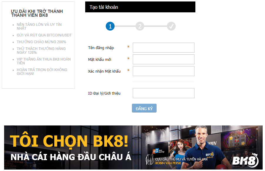 Hướng dẫn đăng ký tài khoản tại Bk8